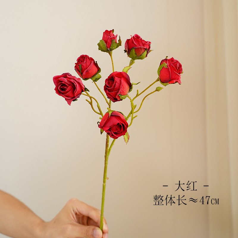 European Retro Simulation Coke Edge Rose Indoor Hotel Decorative Ornaments Wedding Set Silk Flower Single Branch 7 Roses